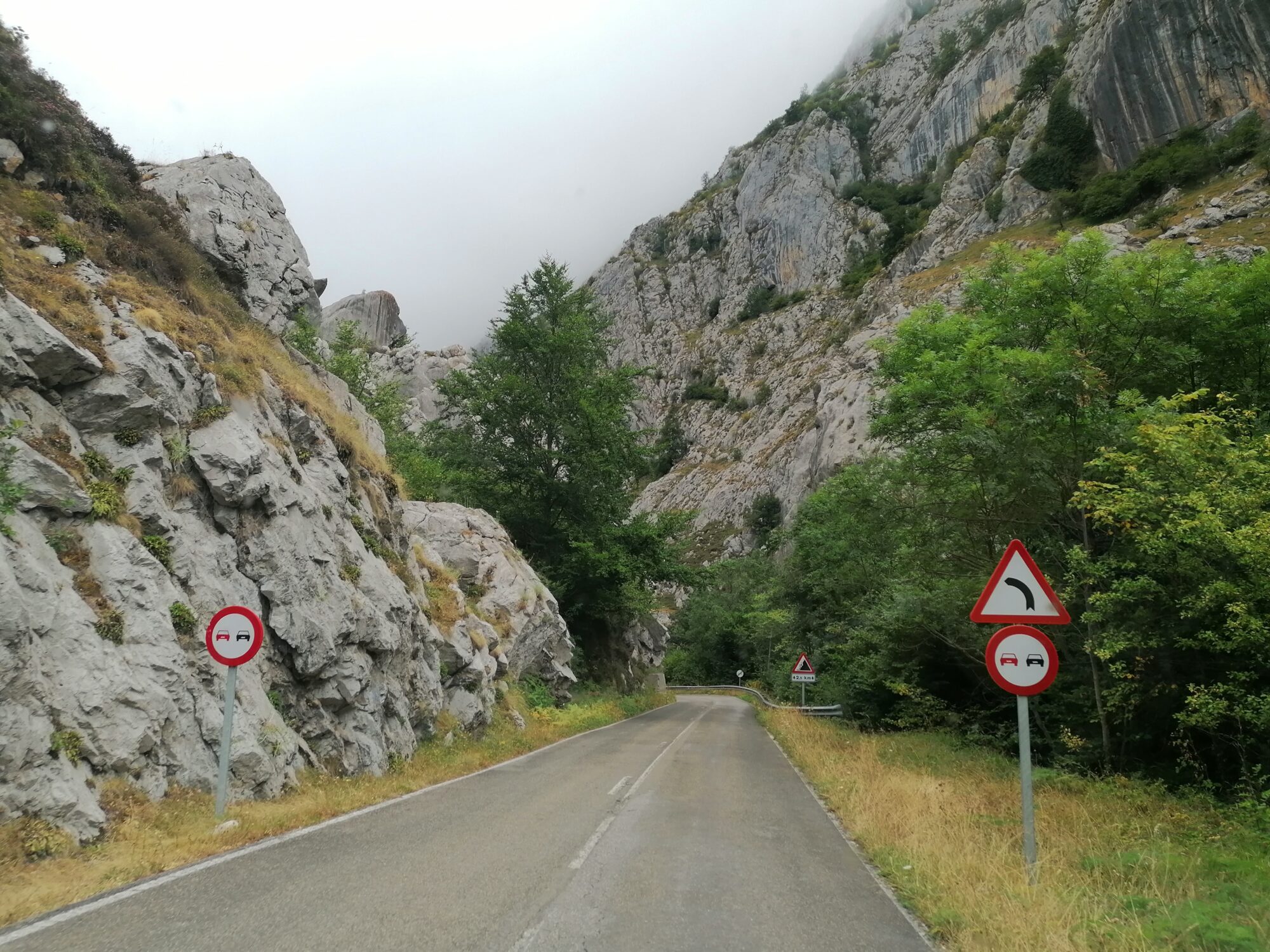 Solène et Lison jouent encore dehors, j’en profite pour me laver les cheveux, je ferai la recharge du camping-car à Proaza en attendant les cyclistes. Et puis nous commençons la grande descente. 30 minutes de route de montagne, puis 15 minutes de gorges resserrées. Arrêt services. Les filles coupent les légumes de la salade de midi pendant que je vide la boîte à caca et que je remplis le réservoir d’eau en même temps. Dans cette partie de l’Espagne, les aires de services pour camping-car sont partout et toujours propres et bien équipées. Ici, un tuyau est à disposition, même pas besoin de sortir le mien.