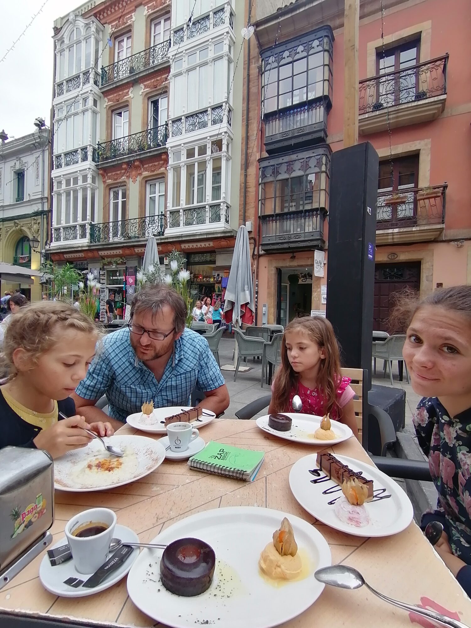 Et comme les journées sont interminables en Espagne, nous partons tranquillement pour Oviedo, à 30 minutes de là, visiter la ville et son musée des beaux-arts. Oviedo est la capitale de la principauté des Asturies, située au cœur d’une importante zone industrielle et minière. La vieille ville est composée d’une multitude de jolies placettes et de beaux édifices asturiens, décorés et colorés. Nous trouvons à nous garer assez facilement et très près du cœur de ville piétonnier. Nous plongeons immédiatement dans ses rues animées.