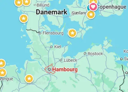 Nous rentrons au camping car vers 16h, avec deux grosses heures de route pour atteindre enfin le Danemark. Quelques arrêts techniques, courses et essence, ponctuent le trajet. Nous arrivons à Tønder, première étape danoise, que nous visiterons demain. Le parking du village est agréable, nous avons la place de positionner le salon face aux champs et aux éoliennes allemandes. Charlotte reprend ses chasses activement.