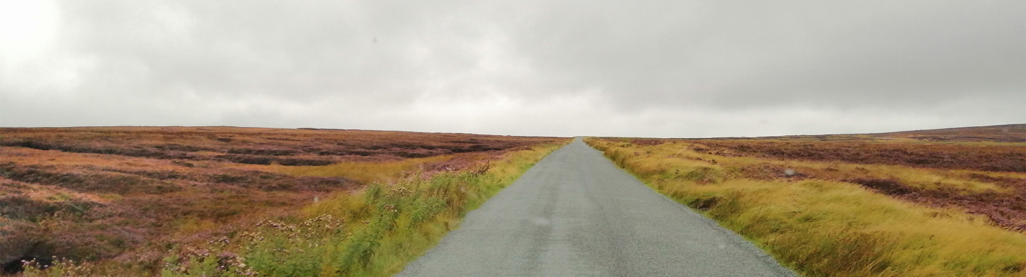 Une cascade à proximité sera notre spot déjeuner. Mais au chaud à l’intérieur. Une balade pour essayer de la voir, le parking est au dessus de la cascade… On ne la voit pas vraiment. Nous reprenons la route. Nous aimerions trouver une balade à faire : un parking, un chemin et pas trop de pluie, mais ce n’est pas facile à trouver. La route serpente à travers les hauts plateaux, le paysage est magnifique, mais on ne peut pas s’arrêter… Dernier col avant Dublin. Un chemin trace droit dans la lande. Il y a un espace pour se stationner devant la barrière qui le ferme. Disciplinés, nous voulons nous garer de façon à laisser le passage pour le chemin. Je sors, Pierre se serre d’un côté, ça ne suffit pas. Je rentre « Laisse tomber, je ne le sens pas. Il y a beaucoup de vent en plus ».