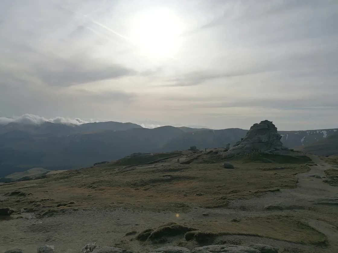 En étudiant mieux la carte, je comprends que la route en face de nous longe la crête de ce massif et nous rapproche beaucoup du Sphinx de Bucegi et qu’il semble y avoir un chemin de randonnée pour s’y rendre. Changement de direction, allons voir si l’on peut se spoter là bas. La route qui traverse les alpages est magnifique. Nous arrivons sur un parking de départ de randonnée, déjà occupé par une dizaine de véhicules.