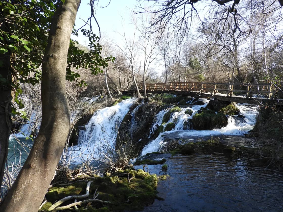 Un peu comme à Plivitce, mais sous le soleil cette fois-ci. Plus de hantise qu’un enfant ne glisse sur les passerelles gelées. Quoi que. Nous parcourons les presque trois kilomètres de passerelles à travers la rivière, c’est très agréable, nous sommes complètement seuls à cette saison. La boucle est vite bouclée. Long arrêt au soleil devant le lac principal et ses larges cascades.