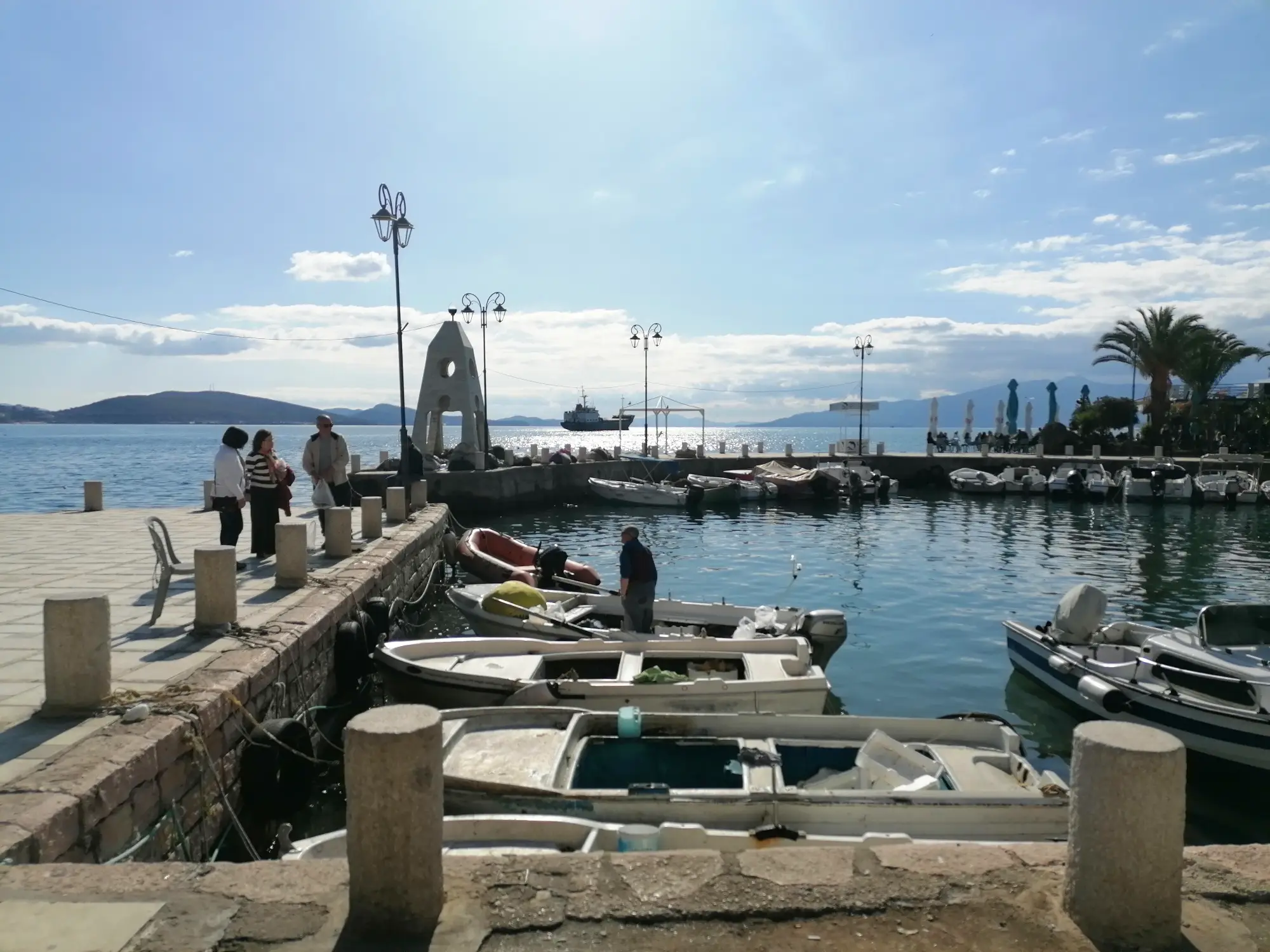 Un burek sur la plage. Aujourd’hui, nous avions initialement prévu de visiter le site archéologique de Butrint. Mais franchement, avec le soleil qu’il fait, nous avons tous envie de profiter de la plage, mais pas en centre ville, un truc plus tranquille, comme on aime. Je regarde ma carte, je sais que le coin est réputé pour ses belles plages. Pas de Park4night qui aurait pu nous conseiller quelque chose d’accessible. Il va falloir explorer. Peut-être la plage du monastère. Ou celle des goélands. Allons-voir.